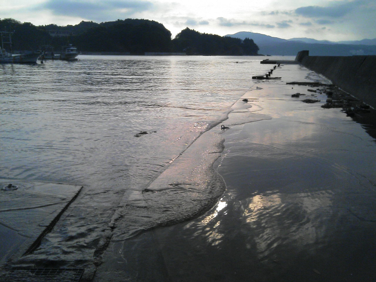 地盤沈下のため、満潮時には海面が防波堤の上までくるようになっていました。