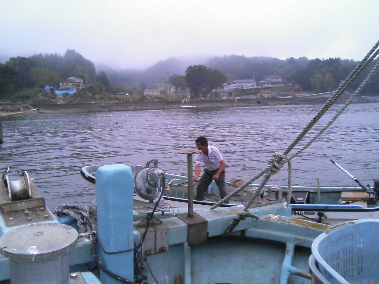 津波で流されずに残った船を隣りの漁港に移すので、一緒に乗っていきました。