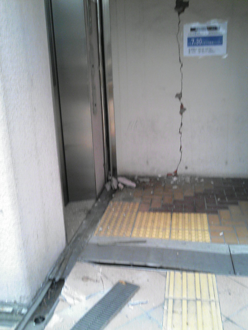 ビルとペデストリアンデッキの間が割れて別々に揺れていました。